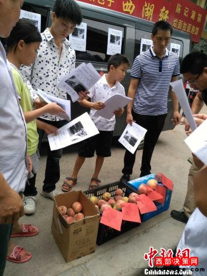 陳國(guó)西“贈(zèng)桃尋妻”的舉動(dòng)引來(lái)不少路人幫忙散發(fā)尋人啟事。韓章云 攝