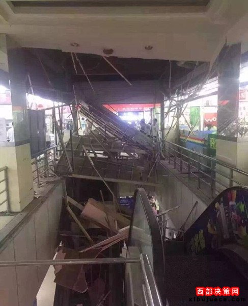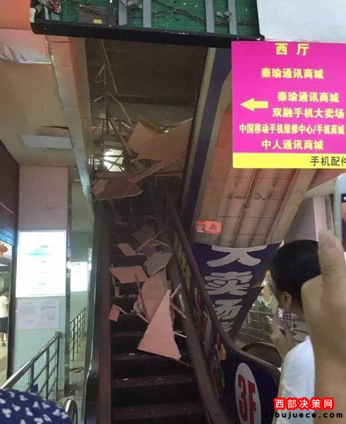 西部決策網(wǎng)訊(通訊員 展?。?nbsp;今天中午1點(diǎn)左右,西安市西華門海星智能廣場(chǎng)四樓賣場(chǎng)電梯頂?shù)蹴斖蝗幻撀?。商戶們說(shuō),房頂是木質(zhì)結(jié)構(gòu),坍塌毫無(wú)預(yù)兆。事故所幸暫時(shí)沒(méi)有人員受傷!