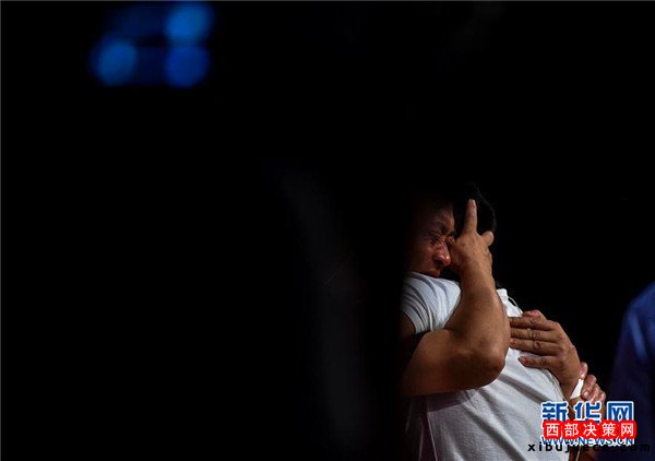 9月13日,在被拐家庭中秋認(rèn)親活動(dòng)上,被拐人王某久的父親緊緊擁抱兒子。