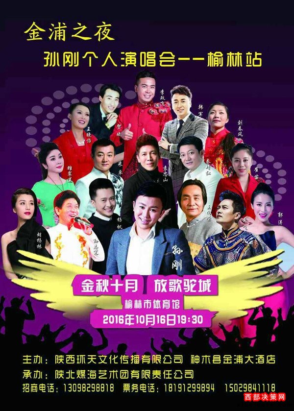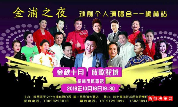 西部決策網(wǎng)榆林訊 (李建治 賀成友 石海瑞 呂正) 現(xiàn)場(chǎng)報(bào)道  塞上秋高氣爽,塞上秋色迷人。9月25上午9點(diǎn),由陜西環(huán)天文化傳播有限公司、神木縣金浦大酒店主辦,陜北煤海藝術(shù)團(tuán)責(zé)任有限公司承辦的“金浦之夜孫剛個(gè)人演唱會(huì)——榆林站”在榆林煤海大舞臺(tái)召開(kāi)了新聞發(fā)布會(huì),榆陽(yáng)區(qū)文體事業(yè)局局長(zhǎng)和60余家新聞媒體參加了新聞發(fā)布會(huì)。