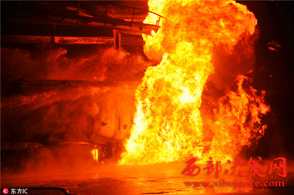 據(jù)了解,事故發(fā)生油罐區(qū)占地約40畝,主要生產(chǎn)航空汽油,油罐區(qū)共有油罐10個,油罐內(nèi)裝有原料及航空汽油約300余噸,發(fā)油平臺往罐車內(nèi)輸送航空汽油時突然發(fā)生火災(zāi),燒毀發(fā)油平臺及油罐車等,著火油罐車儲量30噸,著火時車內(nèi)汽油約10噸,過濾器中有油約7噸,共計約17噸燃油,離鄰近儲油罐約30米。