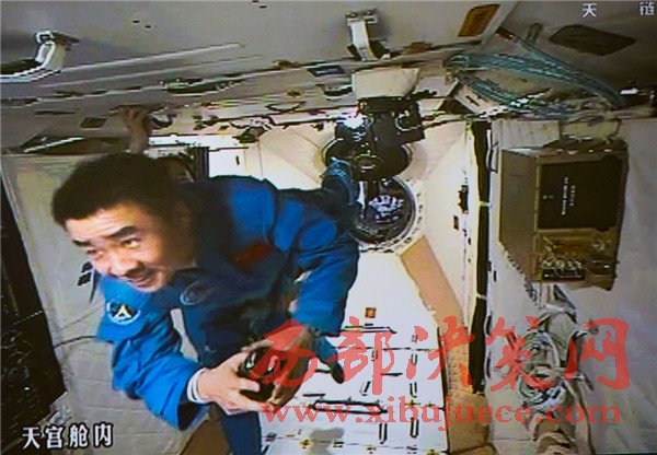 10月19日,神舟十一號航天員景海鵬和陳冬順利進(jìn)入天宮二號實驗艙。這是景海鵬進(jìn)入天宮二號實驗艙(攝于北京航天飛行控制中心大屏幕)。
