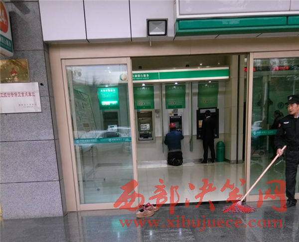 昨晚9時(shí)許,記者聯(lián)系上小張,他是西安理工大學(xué)的學(xué)生,今年20歲。小張回憶說(shuō),這是昨日上午9時(shí)許他在銀行門(mén)口看到的一幕,一位50歲左右的農(nóng)民工,將鞋放在銀行門(mén)口,然后進(jìn)到銀行里面,“怎么進(jìn)去的我沒(méi)看見(jiàn),只看見(jiàn)他脫鞋了,后來(lái)跪在A(yíng)TM機(jī)前操作。”