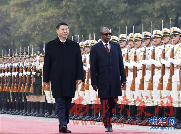 習(xí)近平指出,幾內(nèi)亞是撒哈拉以南非洲地區(qū)第一個同新中國建立外交關(guān)系的國家。57年來,雙方始終真誠友好、平等相待,在涉及彼此核心利益和重大關(guān)切問題上一貫相互理解和支持,兩國友好合作關(guān)系經(jīng)受住了國際風(fēng)云變幻的考驗,歷久彌堅。中方愿同幾方一道,充分發(fā)揮兩國傳統(tǒng)友好和經(jīng)濟(jì)互補(bǔ)兩大優(yōu)勢,為發(fā)展全面戰(zhàn)略合作伙伴關(guān)系不斷注入新動力。