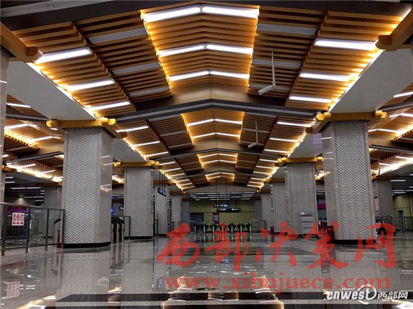 在大雁塔站,記者發(fā)現(xiàn)站廳層屋頂采用頂尖式設(shè)計(jì),與大雁塔遙相呼應(yīng)。
