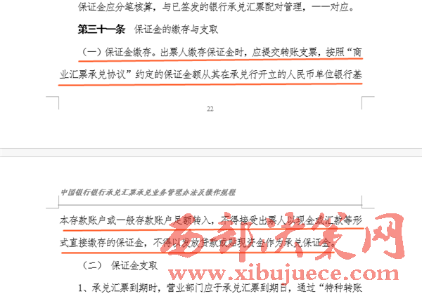 北京時間記者查閱中行承兌匯票業(yè)務(wù)管理辦法了解到,在保證金繳存時,要從公司在其行開立的基本賬戶或一般賬戶轉(zhuǎn)入,不得接受現(xiàn)金或匯款形式轉(zhuǎn)入。