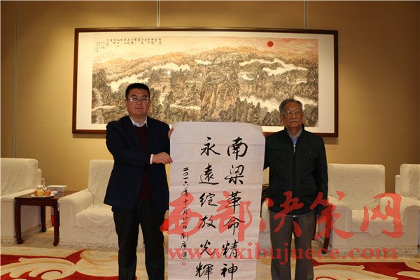 西部決策網(wǎng)訊(帥華鋒  杜杰  通訊員 趙高銪)11月21日,原全國政協(xié)常委、國家林業(yè)部常務(wù)副部長劉廣運,國家林業(yè)局老干局副局長、中國林業(yè)書法家協(xié)會副秘書長王德宗,人民日報海外版書畫藝術(shù)部主任助理、人民書畫藝術(shù)網(wǎng)外聯(lián)部副主任陳厚學(xué)一行,在慶陽市林業(yè)局、華池縣人民政府副縣長池軍以及南梁紅色景區(qū)建設(shè)管理局辦公室主任張全鈺、南梁革命紀(jì)念館館長聶明靜的親切陪同下,踏上陜甘邊革命根據(jù)地“紅色南梁”這片革命的熱土。