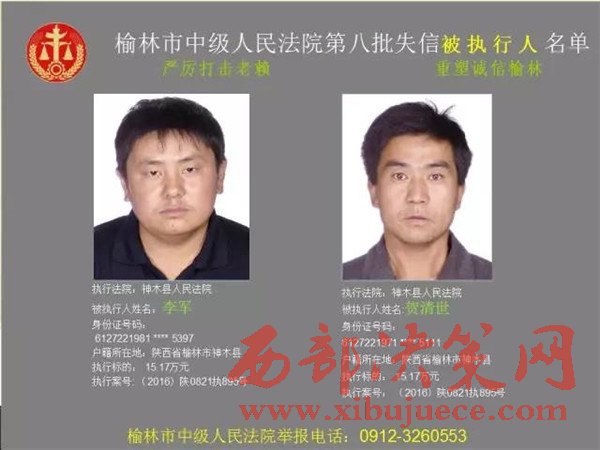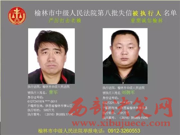 榆林中院最新發(fā)布第八批失信被執(zhí)行人"黑名單"