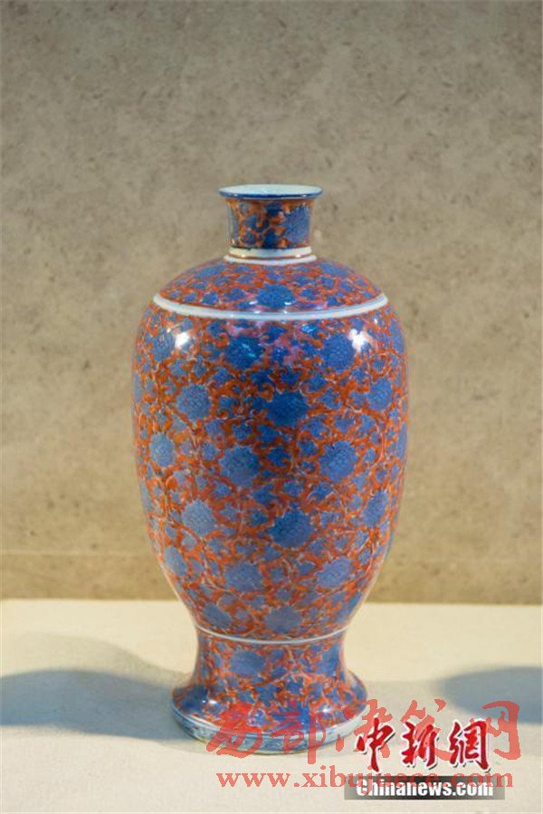 明萬(wàn)歷青花礬紅彩纏枝蓮梅瓶。