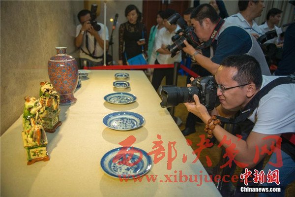 11月23日,“海外文物入藏國(guó)家南海博物館”新聞發(fā)布會(huì)在??谂e行,十件在海外漂泊數(shù)百年的珍貴陶瓷文物,經(jīng)兩家國(guó)內(nèi)企業(yè)在紐約佳士得拍賣會(huì)上成功拍下后,無(wú)償捐獻(xiàn)給國(guó)家南海博物館。圖為入藏中國(guó)國(guó)家南海博物館的海外文物。