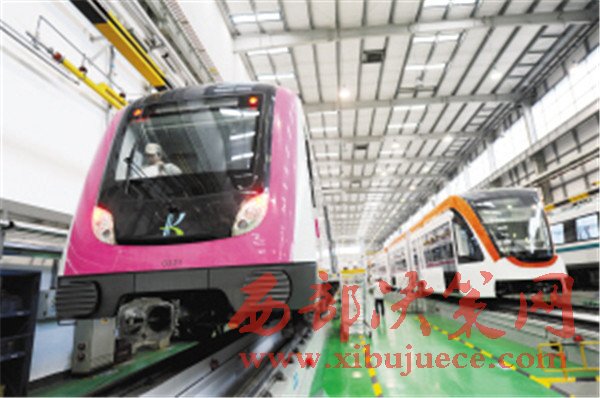 在生產(chǎn)車間,記者看到,3號線列車以粉紅色和白色為主要基調,6號線列車以藍色和白色為主要基調。和昆明已經(jīng)投入運營的列車一樣,剛出爐的列車也是B型車,車頭上同樣標有代表昆明的字母“K”,而且有著軌道樣式的變形。值得一提的是,昆明中車公司正在調試的3號線此前已和市民見過面,而此次亮相的6號線列車可以說是首次出現(xiàn)在公眾視野,因為此前6號線運行使用的列車是從1、2號線首期調用的。