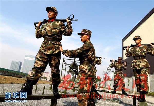 12月5日,艾麥爾·吾斯曼(左一)進行突擊訓練。武警上??傟犓闹ш犘卤B維吾爾族戰(zhàn)士艾麥爾·吾斯曼來自新疆維吾爾自治區(qū),今年從江南大學應征入伍。經(jīng)過嚴格的新兵訓練,艾麥爾·吾斯曼快速完成由大學生向合格軍人的“漂亮轉(zhuǎn)身”。