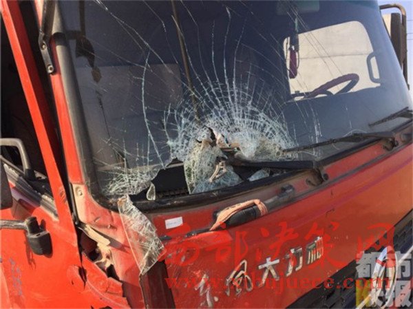 貨車司機王某:“我當時正常行駛,然后就看見它(拉沙車)從那邊先撞了一輛小轎車,然后撞過來,把我嚇的。”