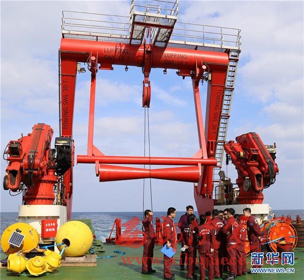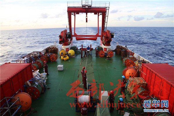 科考隊(duì)員在回收觀測設(shè)備(12月3日攝)。我國遠(yuǎn)洋綜合考察船“科學(xué)”號正在西太平洋執(zhí)行潛標(biāo)觀測網(wǎng)維護(hù)與升級任務(wù)。截至目前,科考隊(duì)員已獲取了140余件觀測設(shè)備連續(xù)1年的現(xiàn)場數(shù)據(jù),維護(hù)了8套深海潛標(biāo),并重新布放至西太平洋海域。
