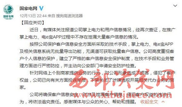 原標(biāo)題:國(guó)家電網(wǎng)被爆千萬(wàn)用戶(hù)信息泄露?國(guó)網(wǎng)緊急開(kāi)會(huì)后深夜回應(yīng)