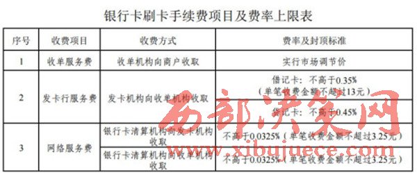 銀行卡刷卡手續(xù)費(fèi)項(xiàng)目及費(fèi)率上限表。來自發(fā)改委網(wǎng)站。