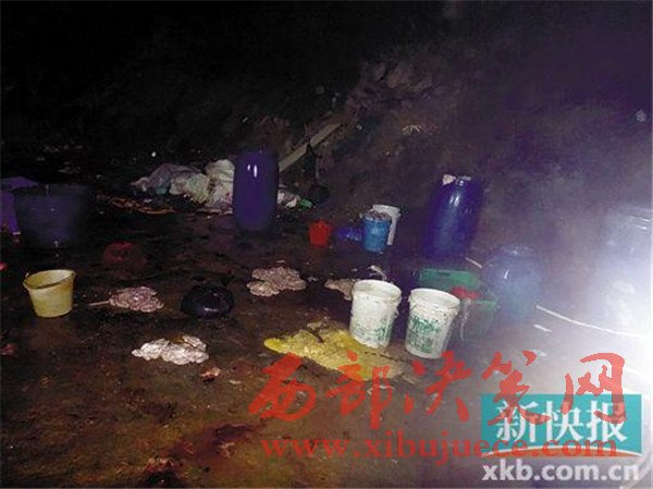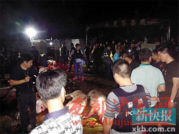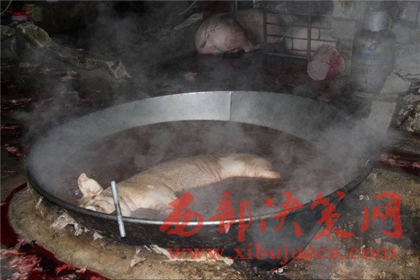 私宰肉屠宰現(xiàn)場(chǎng):殺豬刀與豬糞混在一起