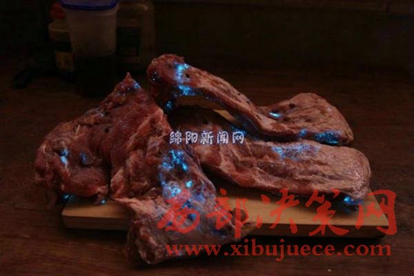 "太恐怖了,豬肉竟然在發(fā)光。"26日,綿陽市民蘇女士向記者反映稱,其在市場上購買的排骨竟然在夜里發(fā)出幽藍的光,這讓她很是驚恐。