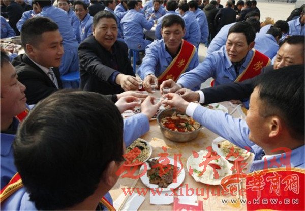 張興民介紹,在為大家發(fā)放了1600萬(wàn)的工資后,工地上還為農(nóng)民工返鄉(xiāng)之前準(zhǔn)備了聚餐。每個(gè)桌上不僅有自釀的“苞谷燒”,還有八涼兩熱的菜品,同時(shí)按照陜西風(fēng)俗習(xí)慣準(zhǔn)備的有大燴菜,僅大燴菜里面的肉都有500多斤,希望以此方式來(lái)感謝農(nóng)民工兄弟一年多的辛苦!