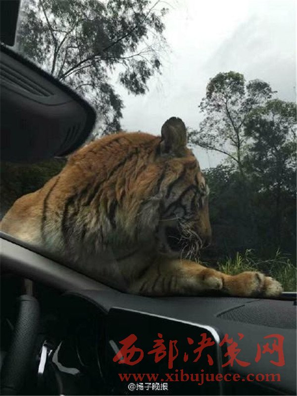 媒體分享的照片顯示,在樂和樂都自駕體驗(yàn)區(qū),一只體型巨大的老虎攔下了一輛游客車輛,隔著擋風(fēng)玻璃向車內(nèi)張望,隨后又直接趴在了引擎蓋上。觀察到這一情況后,園區(qū)的工作車輛迅速趕到,將老虎驅(qū)離,整個(gè)過程有驚無險(xiǎn)。
