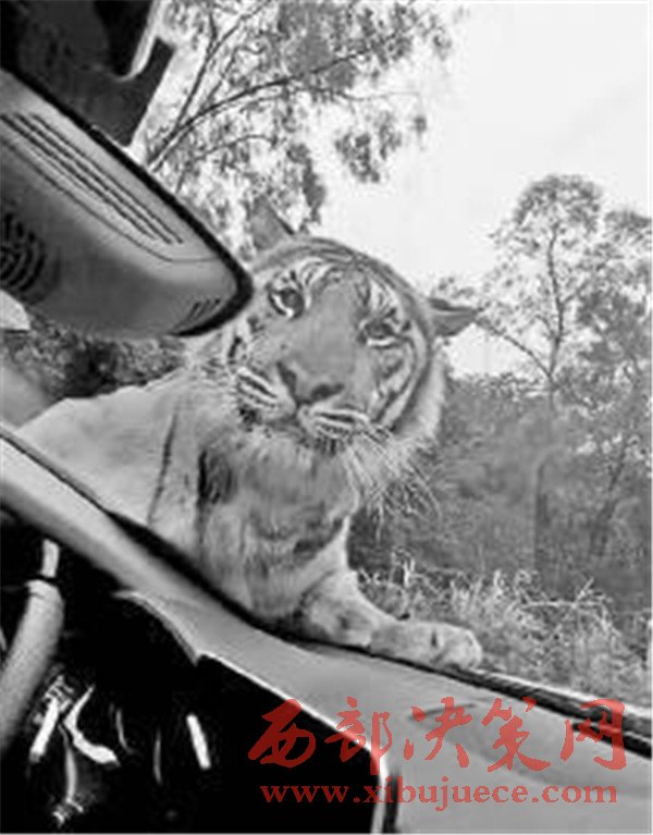 重慶自然體驗(yàn)區(qū)老虎攔下游客車輛 趴引擎蓋上