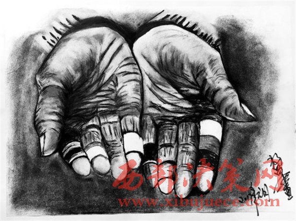 在李福昌家中,記者看到了他給保潔員畫的60張生活速寫。一眼望去,保潔員們神態(tài)、姿勢、動作各不相同,相同的是他們都正在辛勤地勞作。“畫得越多,對內(nèi)心的沖擊越大。”李福昌還特別細心地為每幅畫作都配上合適的詞。一幅手部特寫寫著“看到這雙手,請您不要再亂扔?xùn)|西了”。