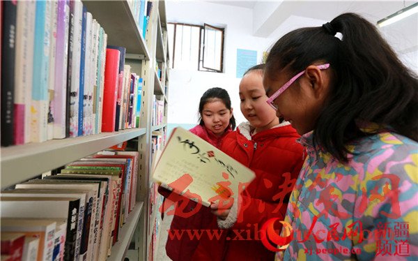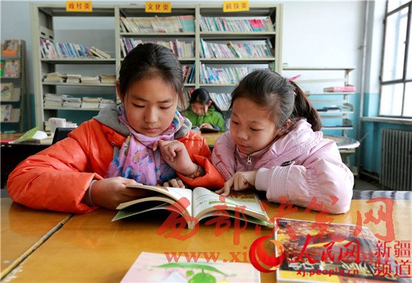 2月4日,新疆生產(chǎn)建設(shè)兵團(tuán)第五師八十一團(tuán)城鎮(zhèn)社區(qū)的農(nóng)家書屋里,學(xué)生們在閱讀自己喜愛的書籍。