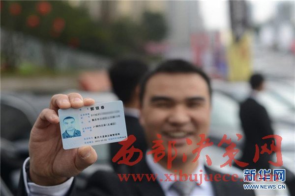 2月7日,駕駛員郭銀春展示自己的網(wǎng)絡(luò)預(yù)約出租汽車(chē)駕駛員證。當(dāng)日,重慶市道路運(yùn)輸管理局發(fā)出首批網(wǎng)絡(luò)預(yù)約出租汽車(chē)駕駛員證,64名駕駛員獲得提供網(wǎng)約車(chē)駕駛服務(wù)的從業(yè)資格。據(jù)悉,網(wǎng)絡(luò)預(yù)約出租汽車(chē)駕駛員證有效期為6年,從事網(wǎng)約車(chē)業(yè)務(wù)時(shí),需要隨身攜帶證件。