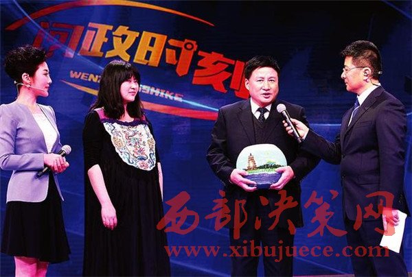 問政現(xiàn)場(chǎng)一位準(zhǔn)媽媽向西安市環(huán)保局局長(zhǎng)陳松林贈(zèng)送了一個(gè)青山綠水沙畫瓶