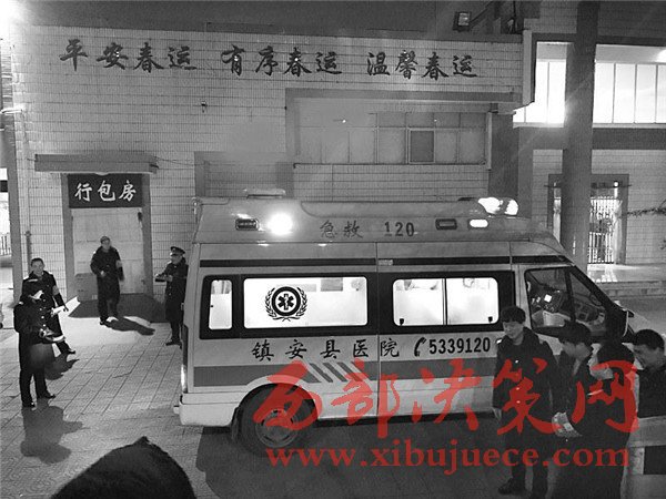 2月4日19時(shí)55分,重慶北開(kāi)往呼和浩特東的K1536次緩緩地進(jìn)站停妥,如同往常一樣,站臺(tái)的工作人員有條不紊地組織著K1536次旅客乘降工作。“西安端乘降完畢……等等,1號(hào),K1536次1號(hào)臥鋪車廂列車員要交個(gè)病人下車醫(yī)治,是個(gè)孕婦,你過(guò)來(lái)下”!當(dāng)班的客運(yùn)值班員王麗英,從站臺(tái)中部邊奔跑著,邊詢問(wèn)了解情況。正在站臺(tái)盯控值班的黨總支書(shū)記趙鵬、車站站長(zhǎng)何曉輝、安全員呂建軍、客運(yùn)主任冀文娟立即緊隨上前了解情況,隨即通知客運(yùn)員許劍鋒立即撥打120,詳細(xì)告知情況,安排好隨車醫(yī)護(hù)人員,并安排站臺(tái)工作人員準(zhǔn)備好椅子、被褥等簡(jiǎn)單的輔助用品。將兩名旅客接下,等待救護(hù)車的時(shí)候了解到,丈夫譚超、妻子鐘紅英都是重慶人,妻子已經(jīng)懷孕8個(gè)多月,預(yù)產(chǎn)期在2月20日左右,帶著2歲半的大兒子,原計(jì)劃坐火車從重慶到寶雞生產(chǎn),沒(méi)想到剛到鎮(zhèn)安站停車期間突然感到身體不適,有臨盆現(xiàn)象,不得已才要求下車。
