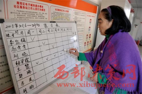 從元月1日起,西安市雁塔區(qū)電子城街辦電子二路東社區(qū),從上午8時(shí)30分到晚上9時(shí)一直辦公,居民辦事更方便了。