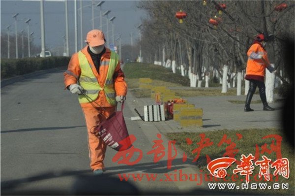從十字路口向南約450米長的東側(cè)道路都屬于潘雙成的保潔區(qū),自從西安開展環(huán)境大整治治理以來,“綠化帶里的垃圾都撿干凈了,現(xiàn)在就是巡查著看看隨意丟棄的垃圾。”潘雙成說,環(huán)境大整治不但要求保潔員的工作更加細(xì)致,也要求沿街商戶注意保持門前區(qū)域干凈衛(wèi)生,“垃圾清掃車也加大清掃頻次,除了路面上比較明顯的垃圾以外,灑水車和清掃車也會把一些小垃圾集中到路邊來,我們清掃起來也比較方便。”潘雙成說,路面沒有煙頭、果皮紙屑是清掃的基本要求,“就像這條道路,偶爾有貨車拋撒的垃圾就比較費(fèi)勁,但是從車內(nèi)隨意向外丟棄垃圾的現(xiàn)象明顯減少了,只有在十字路口,一些等待紅燈的車?yán)飼S便丟下煙頭,這時候也注意不到,等到車開走了才能看到,所以我經(jīng)常在十字路口多等上一段時間,看見煙頭就掃干凈。”