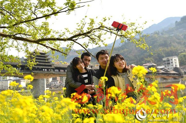 春暖花開時節(jié),廣西龍勝各族自治縣民族風雨橋旁的油菜花競相綻放,風雨橋在油菜花的點綴下美不勝收,形成了一道美麗的春天景致,充滿著濃郁的春天氣息,吸引眾多游客前來觀賞拍照。