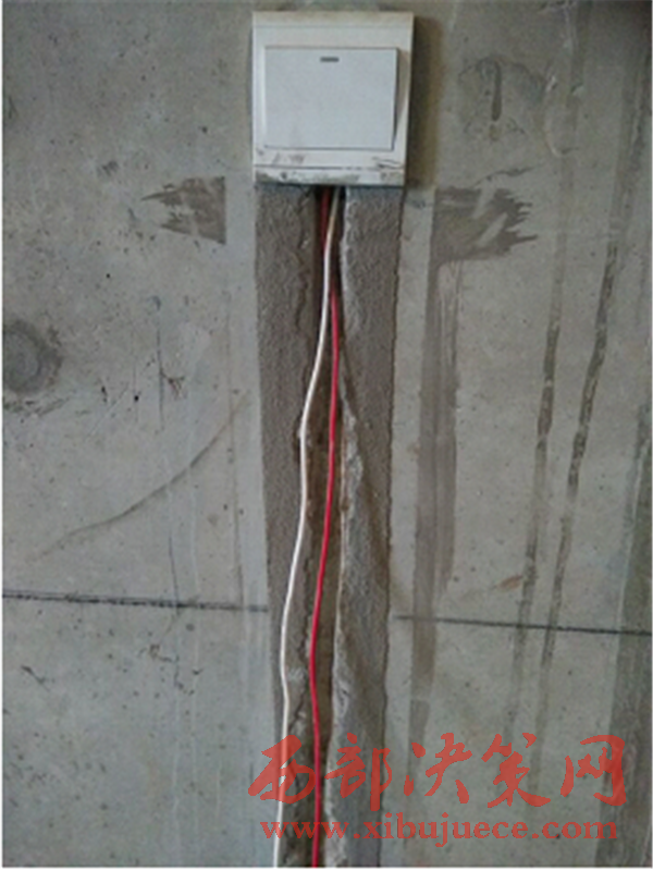 在馬某某手指的天花板(樓板)處,記者看到了一些裂縫,裂縫長(zhǎng)約一米至幾米不等,令人觸目驚心。馬某某家的暖氣管破裂著大口子,已經(jīng)生銹,不忍睹視。墻壁一處電線、走廊網(wǎng)線竟未穿線管,令人擔(dān)憂。