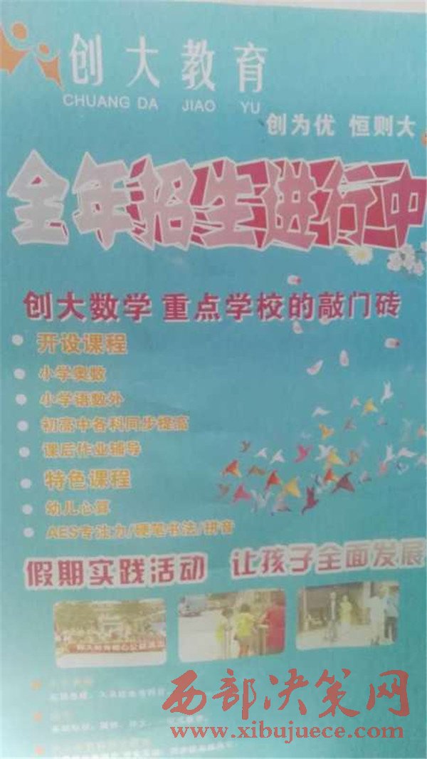 家長為了讓孩子能全面發(fā)展,常年穿梭于各類興趣、輔導(dǎo)班而樂此不疲。有的家長為了讓孩子上個好學(xué)校,托熟人、找關(guān)系,掏天價送孩子上所謂的名優(yōu)輔導(dǎo)機(jī)構(gòu),而實際上實屬無奈,敢恨不敢言,這一現(xiàn)象不得不讓人深思……!實際情況到底怎樣?本社工作人員根據(jù)群眾反映近期對一家名為“創(chuàng)大教育”的輔導(dǎo)班進(jìn)行實地了解,結(jié)果讓人大跌眼鏡。