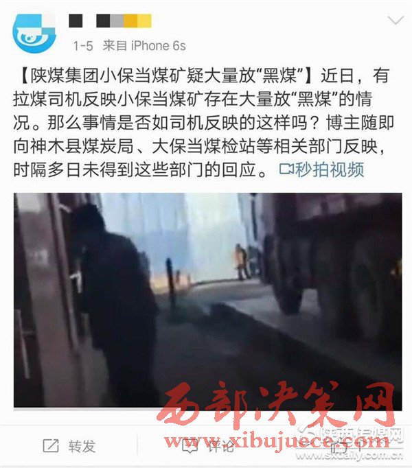 發(fā)稿前,記者又在網(wǎng)上獲悉,1月5日就有網(wǎng)民向神木縣煤炭局和大保當(dāng)煤管站反映過小保當(dāng)煤礦銷售黑煤的現(xiàn)象,該網(wǎng)民稱此事時(shí)隔多日未得到相關(guān)部門的回應(yīng)。