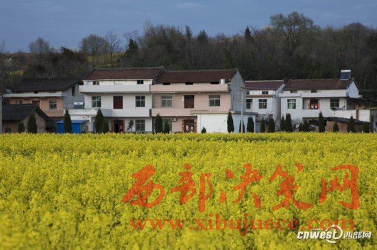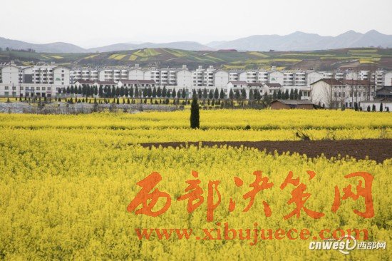 洋縣油菜花和白墻紅瓦相映成趣。