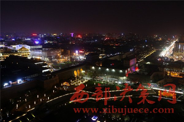 在鐘樓、鼓樓、大雁塔、長安塔等標(biāo)志性建筑物熄燈后,西安城墻不例外,城墻南門熄燈一小時(shí),周邊商場以及飯店也都相繼熄燈。