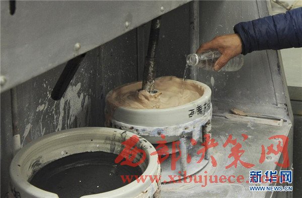 3月24日,在北京京彩瓷博物館里,技師在制作京彩瓷釉料。