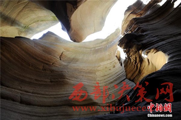 位于陜西省甘泉縣雨岔村的峽谷,是陜北黃土高原上的地質(zhì)奇觀,峽谷內(nèi)壁凹凸不平、線條流暢,走進峽谷,峽壁上的線條如波浪從身邊劃過,最窄的地方只有一個人側(cè)著身子方可過去,其迷人之處與美國羚羊峽谷相媲美。