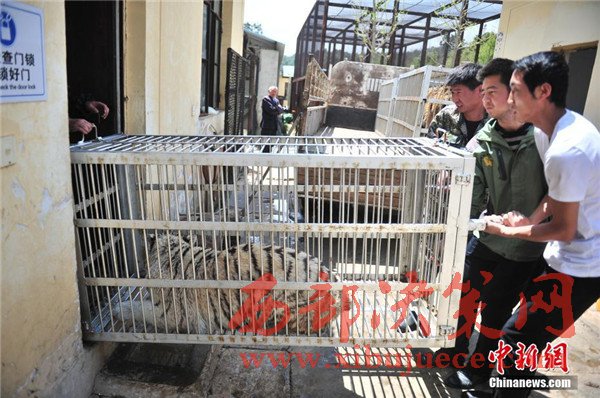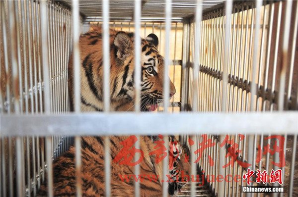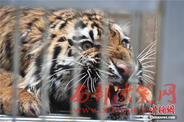 4月5日,關(guān)在籠子里的老虎。當(dāng)日,云南野生動物園6頭老虎從繁育中心搬入散養(yǎng)區(qū),經(jīng)過一段時(shí)間的觀察適應(yīng)期后,就可以與游客見面。據(jù)工作人員介紹,在繁育中心人工飼養(yǎng)長大的老虎到繁殖年齡后,就會搬到有更大活動空間的散養(yǎng)區(qū)。云南野生動物園是中國十大老虎繁殖基地之一。