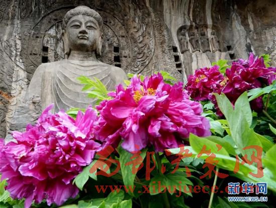 目前正值洛陽(yáng)牡丹的盛花期,洛陽(yáng)龍門(mén)石窟景區(qū)內(nèi)的近萬(wàn)株牡丹爭(zhēng)奇斗艷,與古老的石刻佛像共同構(gòu)成獨(dú)特的風(fēng)景。