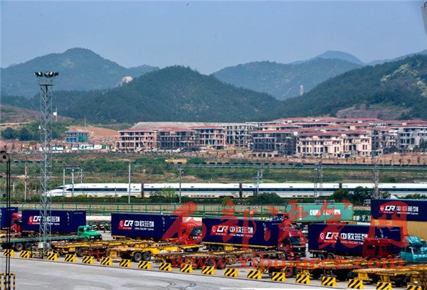 4月15日,浙江義烏西站鐵路口岸,準(zhǔn)備通過中歐班列發(fā)往國外的集裝箱。“統(tǒng)一品牌中歐班列”作為國際貨物聯(lián)運(yùn)的新型組織方式,已成為沿線各國加強(qiáng)基礎(chǔ)設(shè)施互聯(lián)互通、提升務(wù)實合作水平的重要載體和推進(jìn)“一帶一路”建設(shè)、促進(jìn)共問繁榮發(fā)展的重要平臺。