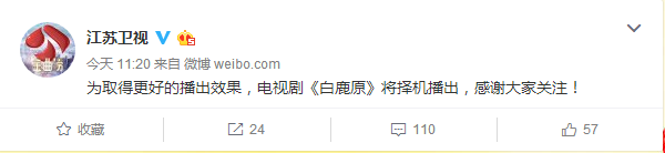 很多守在電視機(jī)前準(zhǔn)備看《白鹿原》的觀眾都撲空了,江蘇衛(wèi)視和安徽衛(wèi)視原計(jì)劃播放第2集的時間卻各自播放了其他內(nèi)容,但兩方都未對《白鹿原》停播作出解釋。就在今日,兩家衛(wèi)視都官方發(fā)表聲明表示,“為取得更好的播出效果,電視劇《白鹿原》將擇機(jī)播出,感謝大家關(guān)注!”