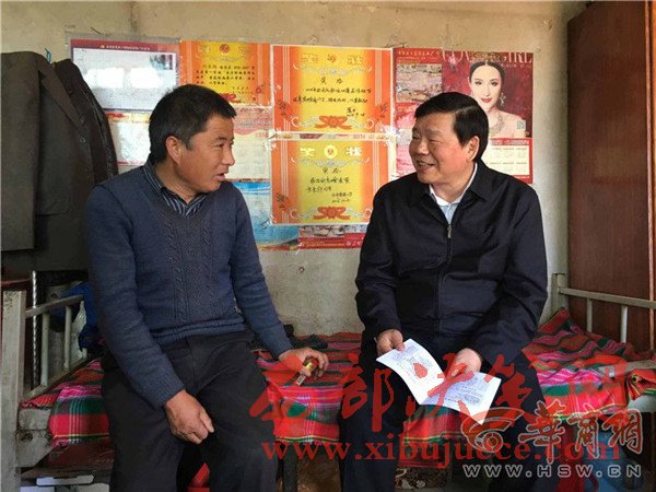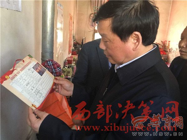 婁勤儉接著問他,家里的開銷主要在什么地方。得知是供孩子上學和給剛去世20多天的老母親治病后,又問:“有困難知道不知道找誰?”葉偉鋒說:“找干部”。婁勤儉進一步追問:“你家的幫扶干部是誰?常來嗎?你能不能叫上名字?”葉偉鋒有些不好意思地說:“我只能記住姓啥。”他想了想找到貼在墻上的一張紙,是“永壽縣干部‘532’精準幫扶萬戶脫貧工作明白卡”,上面記錄著幫扶干部龐阿萌的電話。