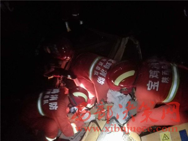 西部決策網(wǎng)-西部大開發(fā)訊(帥華鋒 杜杰 通訊員 史璐峣))4月25日19:09分,寶雞市拓石鎮(zhèn)仙龍村一輛裝載機(jī)側(cè)翻山崖,兩名駕駛?cè)藛T被困。渭濱公安消防大隊巨福路中隊接指揮中心接警后立即出動兩輛水罐消防車官兵12人趕赴現(xiàn)場。途中與報警人聯(lián)系被困人員位于20米深的山崖里,已無生命體征。