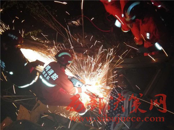 救援指揮員下令先利用剪切鉗對駕駛室A柱進(jìn)行剪切,然后利用無齒鋸對B柱進(jìn)行切割,于21:25分成功將第一名被困人員救出,第二名被困人員位于第一名被困人員下方,并且下半身被卡死無法活動,利用液壓擴(kuò)張器對駕駛室左側(cè)進(jìn)行擴(kuò)張,于21:50分第二名被困人員成功救出,在當(dāng)?shù)卮迕駞f(xié)助下將被困人員利用擔(dān)架抬至路邊移交120,事故現(xiàn)場移交民警后匯報指揮中心并于23:35分安全返隊。事故原因正在調(diào)查中。