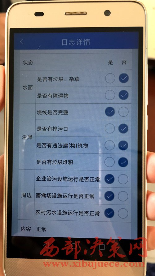 在APP里,記者還可以看到,“河長(zhǎng)”巡河提交記錄時(shí)間精確到秒,而且后臺(tái)會(huì)自動(dòng)記錄“河長(zhǎng)”提交報(bào)告的GPS位置,杜絕了部分“河長(zhǎng)”足不出戶的“紙上巡河”。負(fù)責(zé)治水的主要領(lǐng)導(dǎo)和分管領(lǐng)導(dǎo)也能使用APP實(shí)現(xiàn)同步查閱,并對(duì)問題進(jìn)行督辦、催辦。