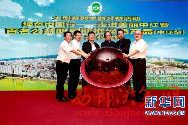 德陽市委常委、政法委書記,中江縣委書記周新在致辭中說,中江是一片生態(tài)優(yōu)美的綠土、朝氣蓬勃的熱土、投資興業(yè)的沃土,將以“綠色中國行——走進美麗中江”為重要契機,秉持“綠水青山就是金山銀山”的重要理念,堅持以綠色作為推動各項事業(yè)發(fā)展的基本色,走出一條生產發(fā)展、生活富裕、生態(tài)良好的永續(xù)發(fā)展道路,形成人與自然和諧發(fā)展的新格局。