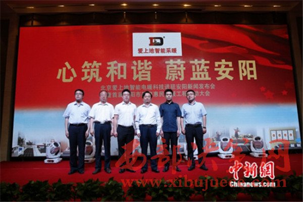 近日,北京愛上地智能電暖科技進(jìn)駐安陽新聞發(fā)布會在安陽舉辦,本次發(fā)布會主題為——“心筑和諧蔚藍(lán)安陽”,旨在通過加快推進(jìn)清潔取暖,讓民心更暖天更藍(lán)。安陽市人民政府副市長田海濤、安陽市殷都區(qū)委常委、常務(wù)副區(qū)長馬衛(wèi)、殷都區(qū)商務(wù)局局長李昳嫻、北京愛上地科技有限公司董事長叢建光參加了發(fā)布會。